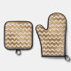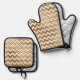 Glam Gold White Zigzag Stripes Oven Mitt & Pot Holder Set