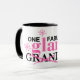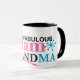Fun design for glamourous grandmas featuring cute retro elements and pink, blue and black text that says ONE FABULOUS GRANDMA. The word GRAND is crossed out and replaced with GLAM. Perfect for a posh grandma or nana. PinkInkArt original!