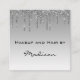 This chic, girly and glam square business card has sparkly grey silver glitter drips on both sides. Easily personalise this business card by adding your name and contact details. Click "customise further" to change the text colour and font style and size. This business card is perfect for a makeup artist, hairstylist, nail technician, or salon owner.