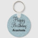 Glam Happy Birthday Blue Silver Glitter Sparkles Key Ring