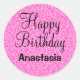 Glam Happy Birthday Hot Pink Glitter Sparkle Name Classic Round Sticker