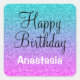 Personalised girly and glam Happy Birthday square sticker with a bright, colourful pink/ blue/ turquoise/ aqua/ lilac/ purple glitter sparkles ombre background and elegant black and white writing. You can easily add the name of your choice and change the colour and font of the name using the customise option!