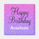 Personalised girly and glam Happy Birthday magnet with an ombre purple glitter sparkles background and elegant black and white writing. You can easily add the name of your choice and change the colour and font of the name using the customise option!
