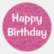 Happy Birthday sticker with glam pink purple rose gold glitter sparkles and bold white writing.
