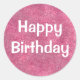 Happy Birthday sticker with glam pink purple rose gold glitter sparkles and bold white writing.