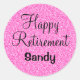 Glam Happy Retirement Hot Pink Glitter Sparkle Classic Round Sticker