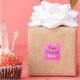 Personalised glam Happy Retirement square sticker with a hot pink glitter sparkle background and black and white writing. You can easily add the name of your choice and change the colour and font of the name using the customise option!
