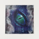 Mythical blue mediaeval gothic dragon eye with purple glam ink and fog.
