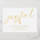 Glam Joyful Script Christmas Party White Real Foil for Joyful which is in a large modern playful set Calligraphy as is the typography with all the party details. The white background on each side can be changed to another colour if preferred via the Edit further option. Easily personalise with your party details.