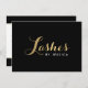 Coordinates with the Glam Lashes Script Text Gold/Black Business Card Template by 1201AM. A glamourous, cursive font spells "Lashes" in faux gold on this customisable gift certificate template. Add your name or business name underneath for a personalised logo. Designed for eyelash extension salons, lash technicians, makeup artists and more. © 1201AM CREATIVE