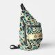 Blue and black leopard dots on a shimmery gold backdrop with a gold pearl necklace gold banner on the front pocket where you can personalise it with a name, phrase or logo or you can keep it as is with the words "Boss Lady". Chic glam leopard theme.
