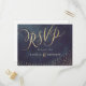 Glamour gold hand lettering calligraphy design and gold dots confetti on dark navy sky night watercolor background, shimmer faux metallic gold glitter effect, modern, chic, elegant and classy, perfect for vintage wedding or winter wedding in evening. Custom your own RSVP postcard for your wedding invitation set.