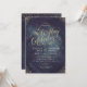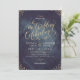 Glamour gold hand lettering calligraphy wedding celebration design and gold dots confetti on dark navy sky night watercolor background, shimmer faux metallic gold glitter effect, modern, chic, elegant and classy, perfect for vintage wedding or winter wedding in evening. Customise your own wedding invitation card.