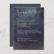 Glamour gold hand lettering calligraphy design and gold dots confetti on dark navy sky night watercolor background, shimmer faux metallic gold glitter effect, modern, chic, clean and elegant, perfect for vintage wedding or winter wedding in evening. Customise your own accommodation cards for your wedding invitation set.