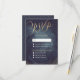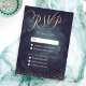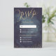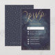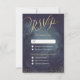 Glamour gold hand lettering calligraphy RSVP design and gold dots confetti on dark navy sky night watercolor background, shimmer faux metallic gold glitter effect, modern, chic, elegant and classy, perfect for vintage wedding or winter wedding in evening. Custom your own RSVP card for your wedding invitation set.