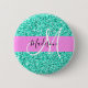 Glam Pink and Aqua Glitter Sparkles Monogram Name 6 Cm Round Badge