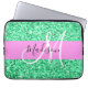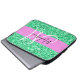 Glam Pink and Green Glitter Sparkles Monogram Name Laptop Sleeve