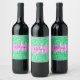 Glam Pink and Green Glitter Sparkles Monogram Name Wine Label