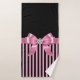 Glam Pink Bow-Pink Black Pinstripes-Black Bath Towel Set