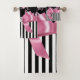 Glam Pink Bow-Pink Stencil-Black White Pinstripes Bath Towel Set
