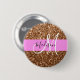 Glam and girly pink and bronze glitter sparkles white monogram name and initial button. Your custom name and monogram are written in an elegant hand lettered script with a pink background. You can change the text color and font style and size using the customize option. A perfect birthday or Christmas gift!