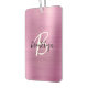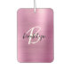 This elegant personalized car air freshener features a monogram and first name in modern black and white script on a glam pink faux brushed metal background.