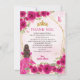 Glam Pink Gold Floral Princess Quinceañera Photo Thank You Card