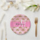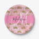 Glam Pink & Gold Glitter Sparkles Crowns Monogram Paper Plate