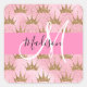 Glam Pink & Gold Glitter Sparkles Crowns Monogram Square Sticker