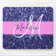 Glam Pink Navy Blue Glitter Sparkles Name Monogram Mouse Mat