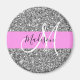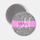 Glam Pink & Silver Glitter Sparkles Monogram Name Magnet