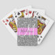 Glam and girly pink and grey/ silver glitter sparkles white monogram name and initial playing cards. Your custom name and monogram are written in an elegant hand lettered script with a pink background. You can change the text colour and font style and size using the customise option. A perfect birthday or Christmas gift!