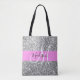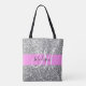 Glam Pink & Silver Glitter Sparkles Monogram Name Tote Bag