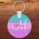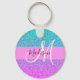 Glam Purple Aqua Glitter Sparkle Gradient Monogram Key Ring