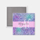 Glam purple, blue and green glitter sparkles monogram name and initial magnet. Your custom name and monogram are written in an elegant hand lettered script with a light pink background. You can change the text colour and font style and size using the customise option.
