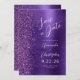 This elegant modern wedding save the date card features a purple brushed metal background decorated with faux diamond glitter. The customisable text combines white script and sans serif fonts. The reverse side repeats the purple brushed metal and glitter design.