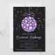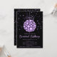 This elegant and glamourous holiday party invitation features a Christmas ornament bauble and purple stars on a black background. The text combines handwritten script and modern sans serif fonts for a classy and sophisticated look. The sparkles and faux glitter add a festive and magical touch.