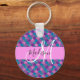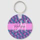 Girly and glam purple, lilac, aqua and blue mermaid glitter sparkles monogram name and initial keychain. Your custom name and monogram are written in an elegant hand lettered script with a pink background. A perfect birthday or Christmas gift!
