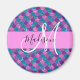 Girly and glam purple, lilac, aqua and blue mermaid glitter sparkles monogram name and initial magnet. Your custom name and monogram are written in an elegant hand lettered script with a pink background. A perfect birthday or Christmas gift!