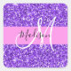 Glam Purple & Pink Glitter Sparkle Monogram Name Square Sticker