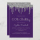 Glam Purple Silver Glitter Drip 60th Birthday Invitation