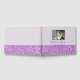 Collect memories in this lavender and purple Bat Mitzvah guest book featuring your daughter's photo. Pale pastel purple is the backdrop for your daughter's photo framed in a dark royal purple at the top of the front cover. Below is a fun script font in deep purple for your daughter's name and then a smaller and much simpler font is where you can add the date of the Bat Mitzvah. The design is completed with a thick border of purple faux glitter at the bottom that wraps around to the back. Create a beautiful keepsake for your daughter with this purple personalised Bat Mitzvah guest book.