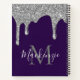 Glam Silver and Purple Sparkle Glitter Drips Monogram Notebook with fashion faux silver glitter drips on a chic background with your name and monogram. If you need assistance or matching items, please contact us at cedarandstring@gmail.com