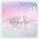 Glam Rainbow Unicorn Ombre Glitter Pink Monogram Square Sticker