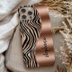 This design features a chic rose gold and black tiger stripe pattern on the left, and a rose gold faux foil image on the right in the shape of a wave bordered with rose gold faux glitter. Personalise it with your name or monogram in a stylish black handwritten brush font.