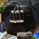 Sylish, Girly, Elegant, Light Rose Gold Glitter Drips 2 Monogram Script custom personalised name monogrammed luggage tag on black. Featuring a modern luxury faux light pink rose gold glitter dripping frame, a large double hand lettered monogram script font with swashes (large size initials), and a serif type font name in light pink on black background. Easy to personalise it.