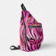 Shine on the go with this glamourous animal print sling bag, featuring sparkling pink and gold glitter stripes on luxe faux leather. The adjustable 22" strap and top zipper closure keep essentials secure, while the roomy interior fits phones, wallets, and lipsticks. Loved by fashionistas for its eye-catching metallic finish and evening-to-daytime versatility. (Product shown: glittery striped bag with visible gold hardware and chain detailing.) Ships fast in gift-ready packaging!
