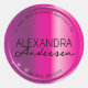 Modern personalised round return address label design featuring your name and address written on a sparkly magenta metallic background. The text can be entirely changed. To make adjustments, choose Personalise. To make more changes, such as altering the font, font colour, or text layout, use the Edit design tool.