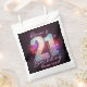 Send your guests home with a dazzle using these fun and energetic favor bags! The design features a large number "21" with a realistic silver disco ball mirror texture, perfectly capturing the excitement of a legal-age celebration. Surrounded by floating musical notes and a glowing bokeh effect in vibrant shades of pink, purple, and blue, this theme is ideal for a girls' night out, a dance club party, or a karaoke birthday bash. The dark background makes the neon colors pop, creating a glamorous nightlife aesthetic. Easily personalize the script text with the birthday girl's name to say "Thank You" in style.