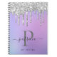 Modern Glam Silver Glitter Drips Girly Feminine Luxury Monogram Script Name Notebook